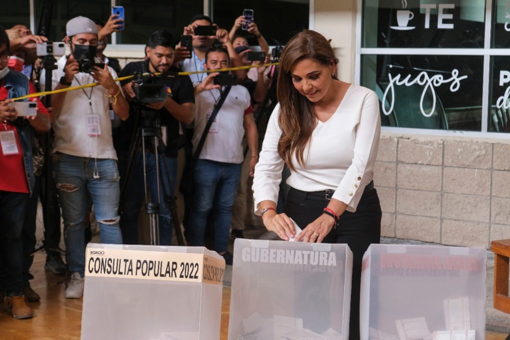 PODER Y CRÍTICA | Mara Lezama, candidata de la coalición Juntos Hacemos Historia en Quintana Roo, acudió a ejercer su derecho al voto esta mañana en la casilla ubicada en la Casa de la Cultura en Cancún.