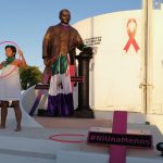 Además, pusieron un paliacate color morado en el cuello, uno de color blanco con morado en la muñeca izquierda y le colocaron una bandera de México a la que le cambiaron el color rojo por morado en la mano derecha al monumento del general Andrés Quintana Roo.