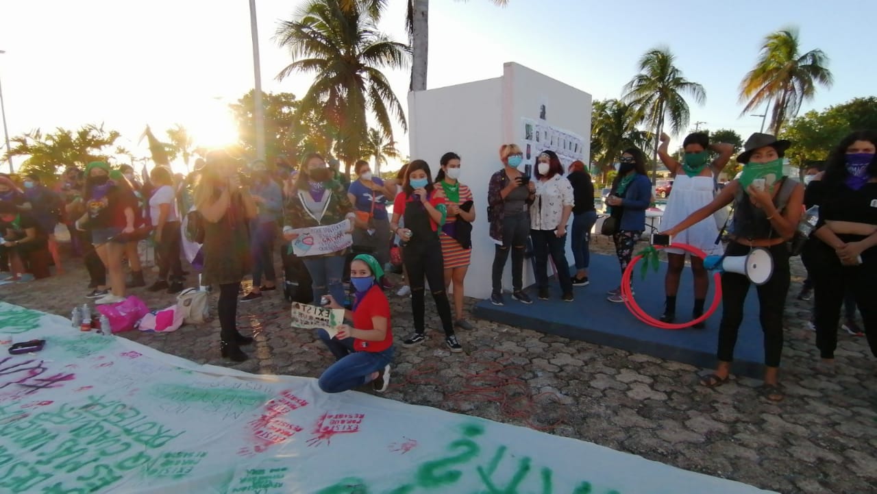 En el lugar estuvo presente la representante de la organización Marea Verde en Quintana Roo, Yunitzi Lim Rodríguez Peraza, entre otras activistas sociales, las cuales portaron paliacates color morado y verde, además de algunos funcionarios del Congreso del Estado se sumaron a este evento.