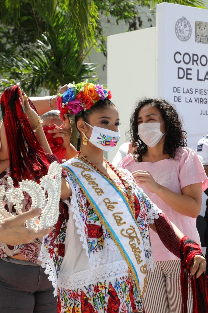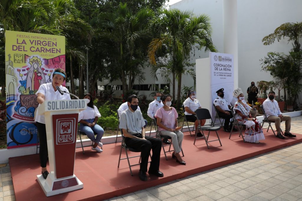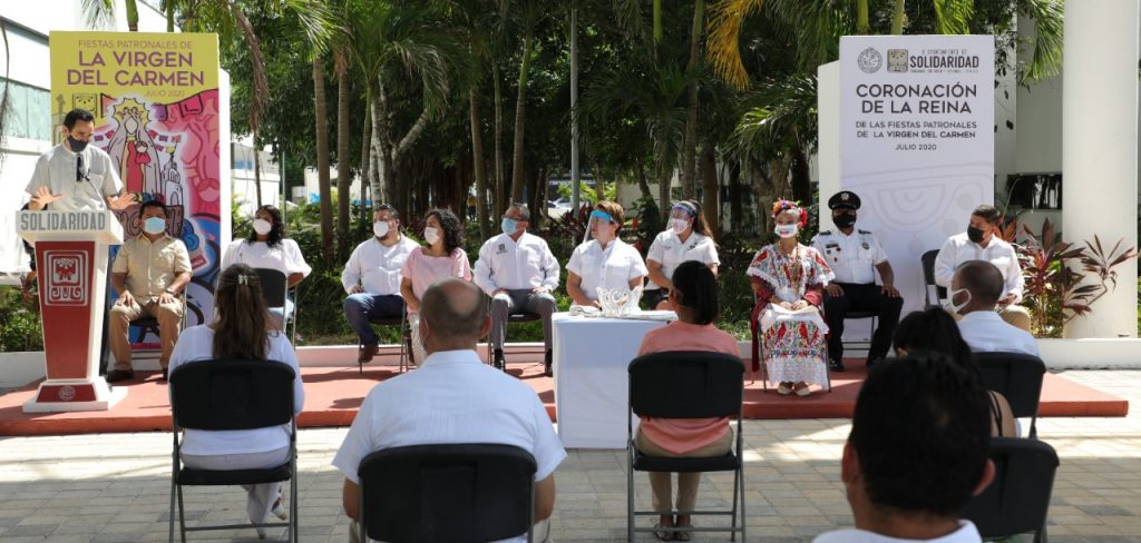 Playa del Carmen, Q. Roo, Martes 07 de Julio de 2020, poderycrítica.- Inician las festividades en honor a nuestra Señora del Carmen con la coronación de la Reina de las Fiestas Patronales 2020, Emmily Jacqueline Barceló Cano, en un evento realizado en el nuevo palacio municipal donde se informó que la imagen será trasladada en vehículo para que la gente pueda festejarla en el marco de la Nueva Normalidad.