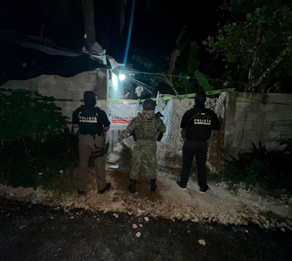 El tercer mandamiento judicial se cumplimentó en un inmueble ubicado en calles de la colonia Aarón Merino en el municipio de Othón P. Blanco, en donde aseguraron diversos indicios como bolsas con polvo blanco con características similares a la cocaína, sustancia cristalina parecida al cristal, sustancia sólida color rosado con propiedades similares a la cocaína en piedra, bolsas de material sintético, con hierba verde y seca con características parecidas a la marihuana.