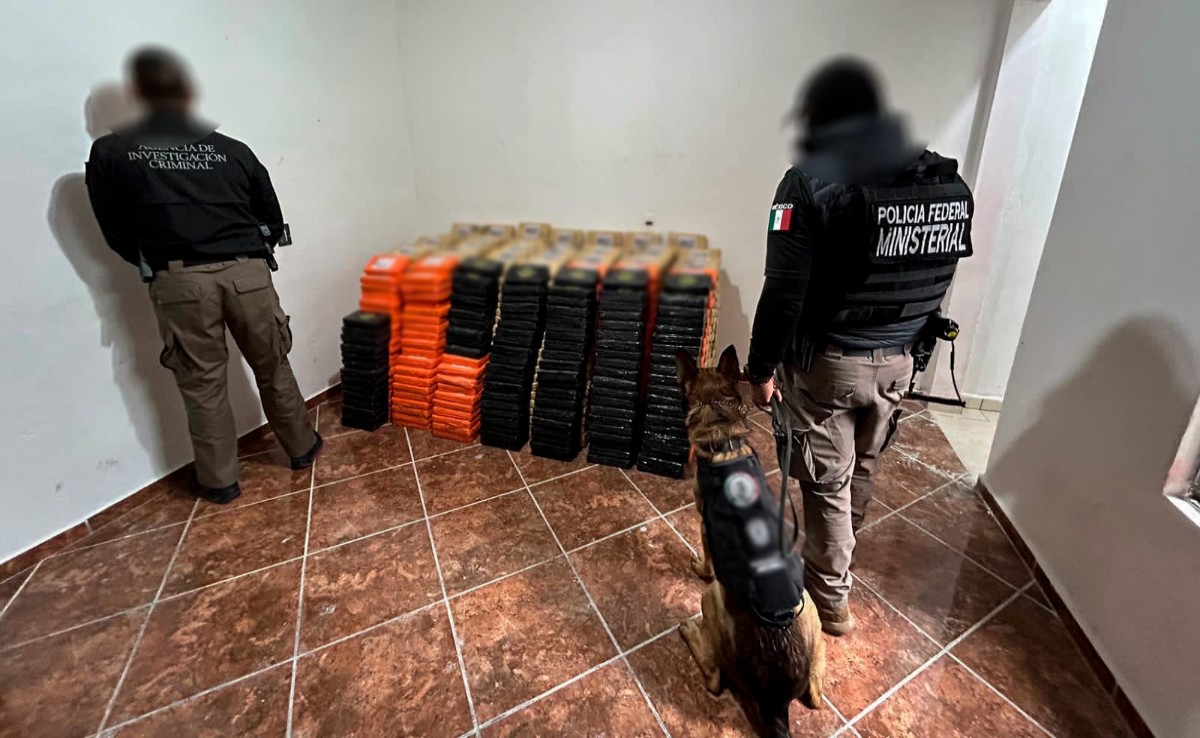 Tras el ingreso al inmueble y con la ayuda de un binomio canino, las fuerzas federales encontraron una pared falsa confeccionada con triplay, detrás de la cual se encontraron 994 paquetes con posible droga con un peso aproximado de 1,400 kilogramos de presunta cocaína.