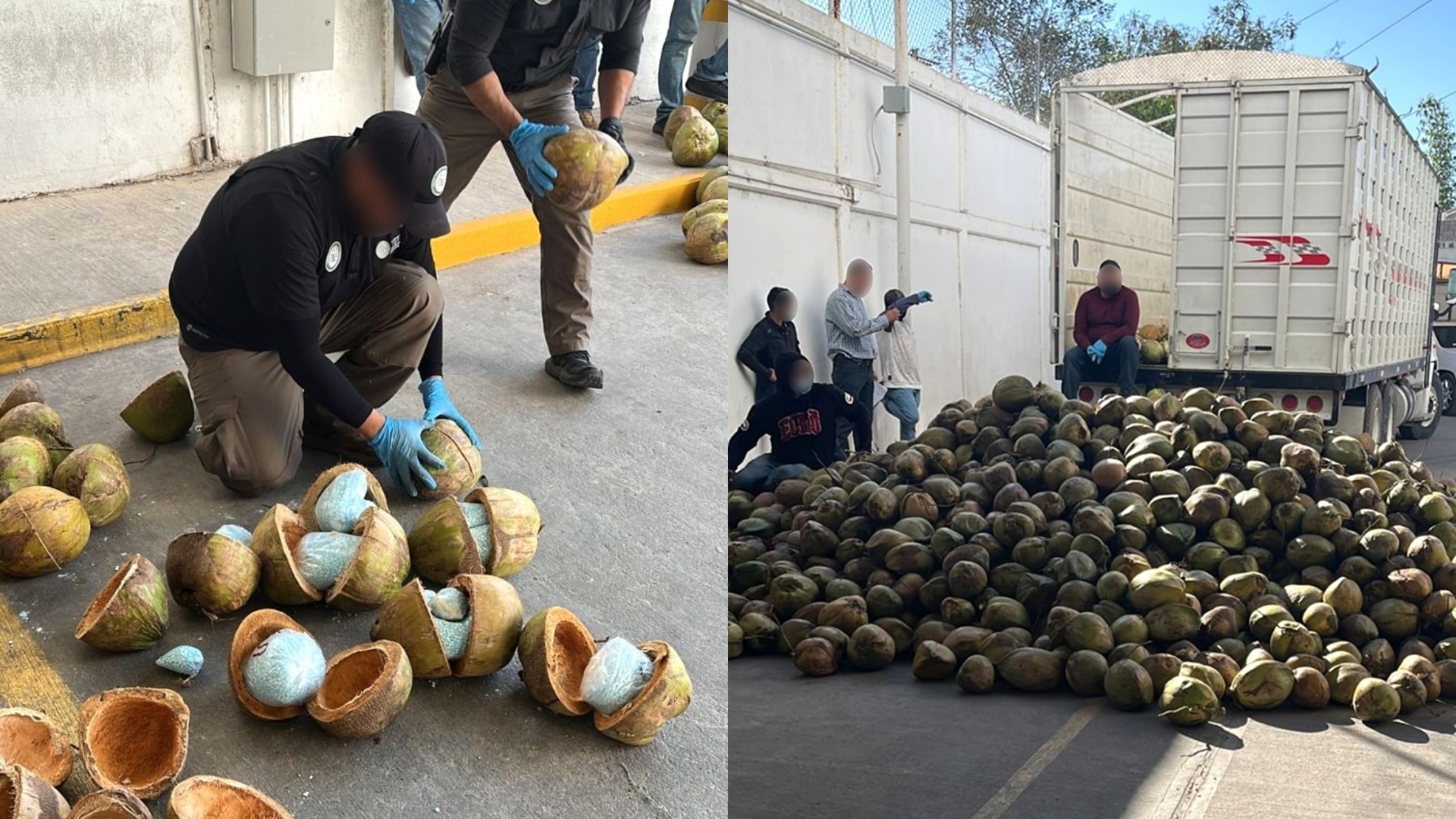 Poder y Crítica | Redacción | La Fiscalía General de la República (FGR) decomisó cerca de 300 kilogramos de paquetes con características de fentanilo, mismos que fueron detectados en dentro de cocos de palmera que eran transportados en un camión con destino a la frontera con Estados Unidos.