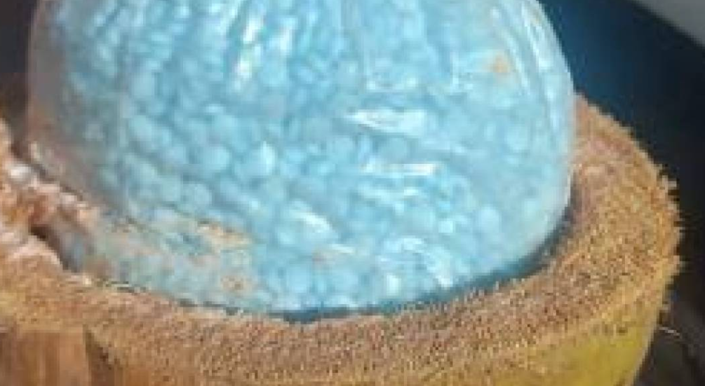 De acuerdo con las imágenes, los frutos estaban partidos por la mitad y en su interior transportaban bolsas con cientos de pastillas de color azul, presuntamente de fentanilo.