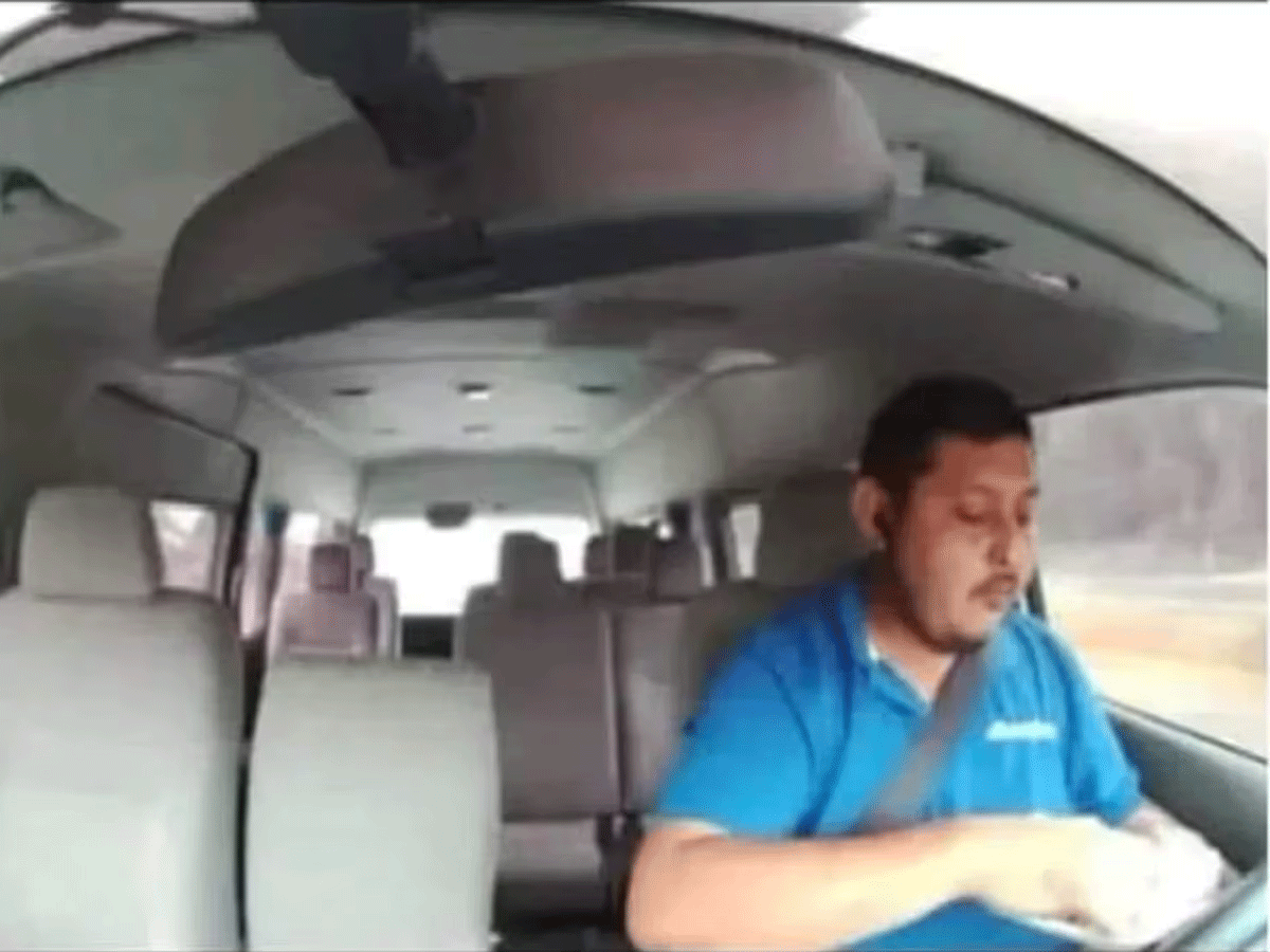 PODER Y CRÍTICA | REDACCIÓN | En redes sociales ha comenzado a circular una foto del interior de la camioneta, la que muestra al conductor de la empresa “eTransfer”, momentos antes del fatal accidente que dejó ayer a seis personas sin vida y dos heridas, en el tramo Playa del Carmen-Tulum de la carretera federal 307.