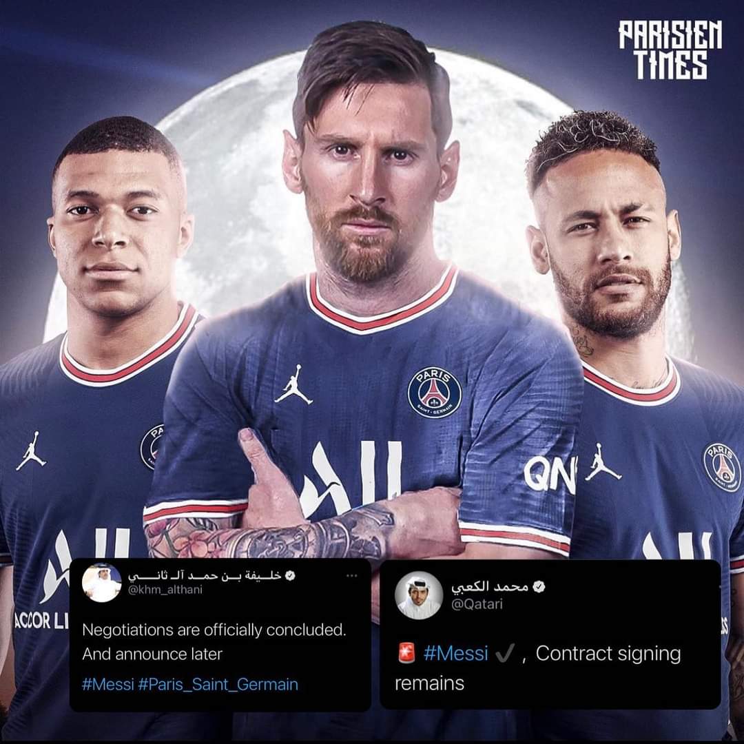 París, Francia, Viernes 06  de Agosto de 2021, poderycrítica.-  Luego del anuncio por parte de la directiva catalana de que Lionel Messi no va a continuar con el Barcelona, en redes sociales se París Saint Germain.