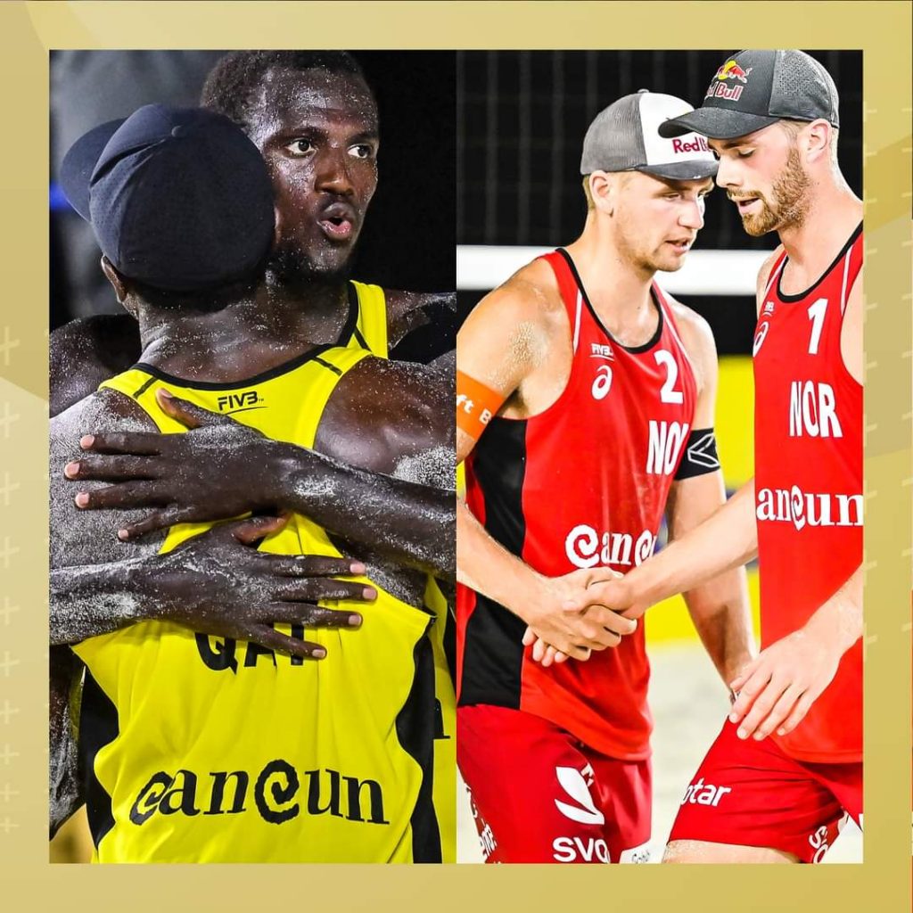 Cherif Younousse y Ahmed Tijan de Qatar, en la rama varonil, disputarán la medalla de oro con Anders Berntsen Mol y Christian Sandlie Sorum de Noruega, primera vez que se encuentran en una final.