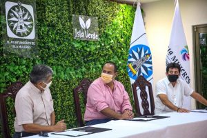 Isla Mujeres, Q. Roo, Miércoles 25 de Noviembre del 2020, poderycrítica.- El presidente municipal, Juan Carrillo Soberanis en representación del Ayuntamiento de Isla Mujeres y el secretario general de la Sección XXV del Sindicato Nacional de Trabajadores de la Educación “El S.N.T.E”, Fermín Pérez Hernández firmaron un convenio de colaboración administrativa para ofrecer estímulos fiscales a los profesores afiliados al sindicato.
