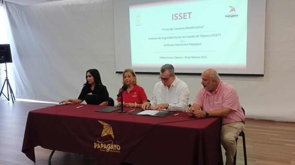 PODER Y CRÍTICA | REDACCIÓN | Como parte de su política social para el bienestar de los trabajadores y sus familias, el Gobierno de Tabasco, impulsa estrategias donde se les permita el sano esparcimiento y derivado de ello, se firmó un Convenio Modificatorio entre el Instituto de Seguridad Social del Estado de Tabasco (ISSET) y el Museo Interactivo Papagayo, que favorecerá en un 40 por ciento de descuento en las entradas generales y el uso de espacio para reuniones.
