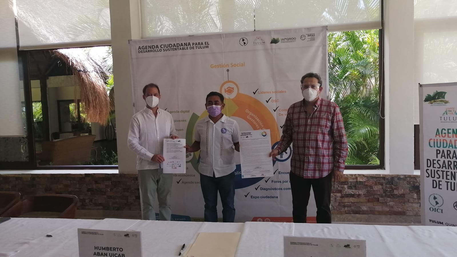 Tulum, Q. Roo, Viernes 28 de Mayo de 2021, poderycrítica.- Cinco de seis de los candidatos y candidatas para la Presidencia Municipal de Tulum firmaron el compromiso de adoptar la Agenda Ciudadana para el Desarrollo Sustentable de Tulum, que tiene como propósito garantizar su cumplimiento independientemente de quien resulte ganador de la jornada electoral del próximo 6 de junio.