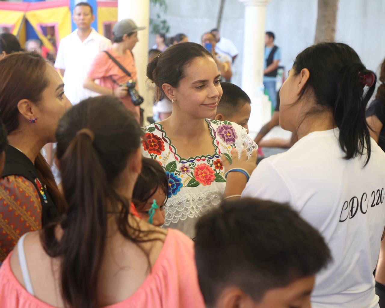 Con una sonrisa en el rostro y acompañada de niñas y niños, Ana Paty Peralta recorrió las diferentes actividades instaladas, participando e interactuando con los infantes, quienes realizaban piñatas y aprovecharon para regalarle dibujos y cartas; Por otro lado, se sumó a las actividades de baile y físicas que practicaban las y los jóvenes, uniéndose a la clásica “plancha” que pone a prueba el rendimiento y acondicionamiento.