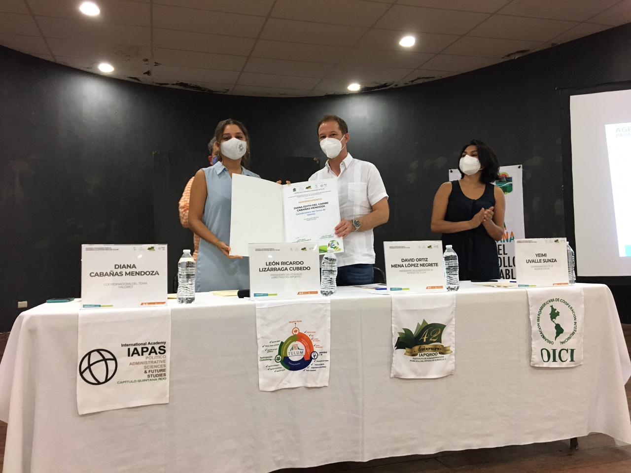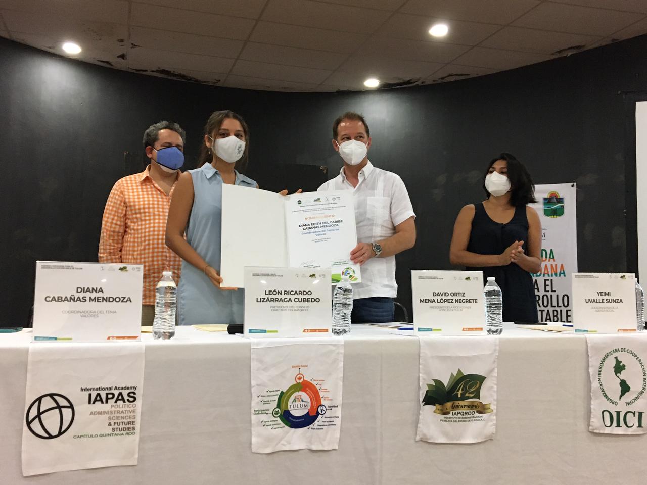 Fue en la casa de la Cultura de Tulum donde se llevó a cabo el evento, con la presencia del Presidente de la Asociación de Hoteles de Tulum (AHT), David Ortiz Mena y el Presidente del Instituto de Administración Pública de Quintana Roo (IAPQROO), León Lizárraga Cubedo, fue entregado el nombramiento a la psicóloga Diana Cabañas.