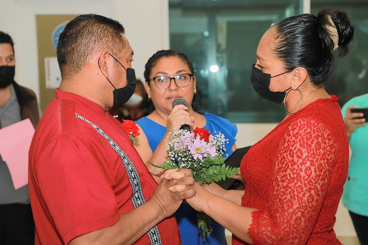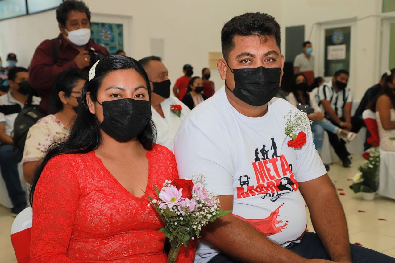 Por la situación sanitaria que aún se vive derivada del coronavirus, en Ciudad Mujeres únicamente representaron al total (28), 10 parejas, y el aforo de los asistentes estuvo reducido de acuerdo a las recomendaciones del sector salud.