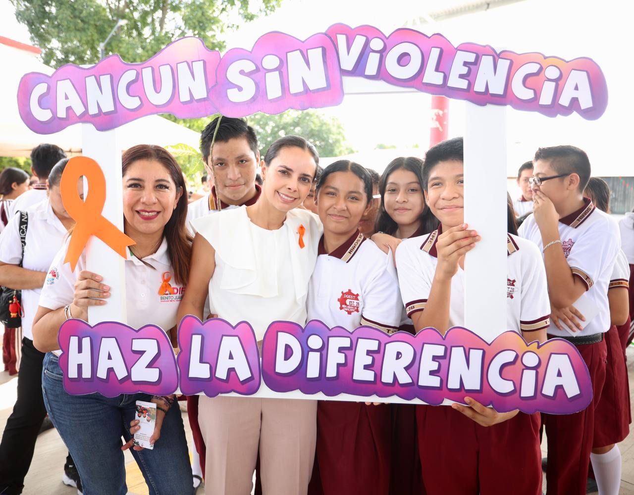 “Quiero pedirles que entre todos hagan acciones que hagan la diferencia, que sean buenos compañeros y se ayuden entre ustedes; decirles no al bullying, no al alcohol, no a las drogas, porque hacen a la gente infeliz. Hacemos el acuerdo de que todos vamos a hacer acciones que hagan la diferencia todos los días en nuestra ciudad, para así construir el Cancún que todas y todos soñamos”, subrayó la Alcaldesa ante los estudiantes.