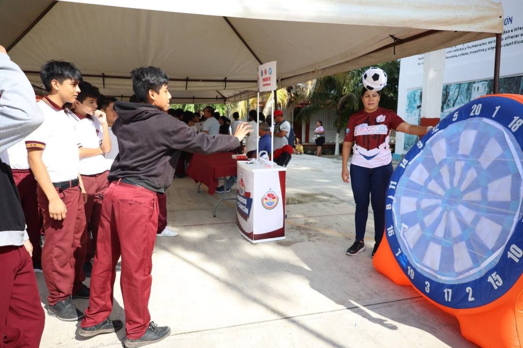 El director del Instituto Municipal Contra las Adicciones (IMCA), Alberto Ortuño Báez; la directora del plantel educativo, Ingrid Imelda Mejía Cu; así como otras dependencias municipales, estatales y federales, participaron en esta última feria del año para los jóvenes, quienes generaron convivencia mediante actividades informativas, deportivas y lúdicas que promueven la cultura de la paz y el empoderamiento de la mujer para erradicar la violencia y fomentar el respeto a los derechos humanos entre los más vulnerables.