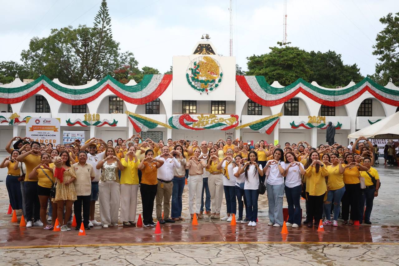Al encabezar la formación del corazón humano en presencia de la presidenta honoraria del Sistema DIF Quintana Roo, Verónica Lezama Espinosa, la Primera Autoridad Municipal dijo que este es un mes para expresar apoyo y solidaridad, pero también para crear conciencia y estar alerta para detectar los signos y síntomas de sospecha de cáncer infantil.