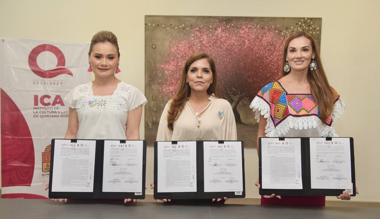 PODER Y CRÍTICA | REDACCIÓN | Con el objetivo de coadyuvar interinstitucionalmente en actividades culturales que favorecen el sano desarrollo de niñas, niños, adolescentes y las familias de la entidad, la presidenta honoraria del Sistema DIF Quintana Roo, Verónica Lezama Espinosa signó como testigo de honor el convenio de colaboración con el Instituto de la Cultura y las Artes (ICA) para implementar actividades, talleres y cursos.