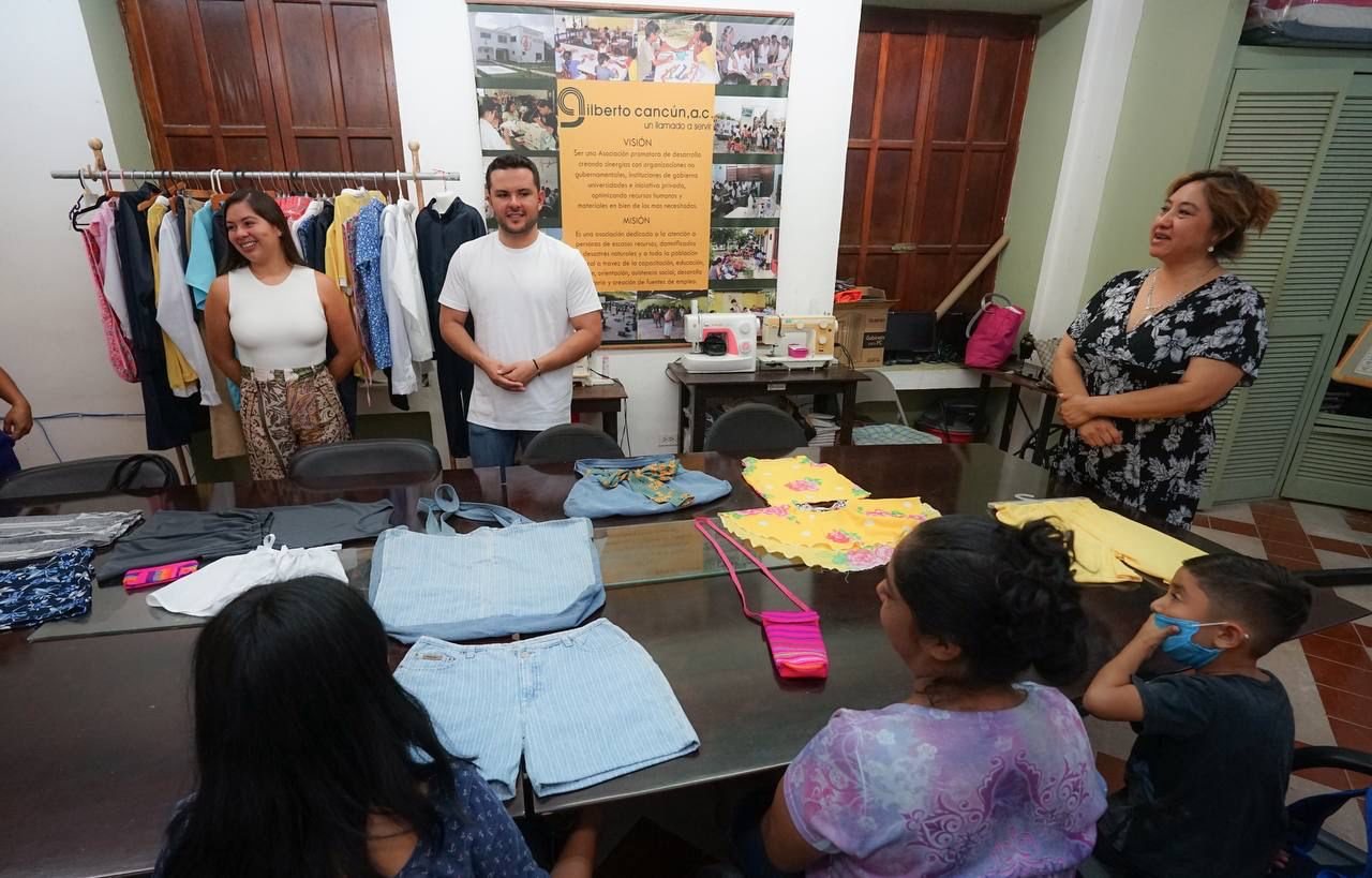 Entre los proyectos productivos de la Asociación Gilberto de Cancún A. C. se encuentran corte y confección, bisutería, maquila industrial, regularización escolar, así como atención psicológica para mujeres vulnerables y sus familias, que las ayuda a fortalecer su autonomía económica y social y les permite llevar bienestar a sus hogares.