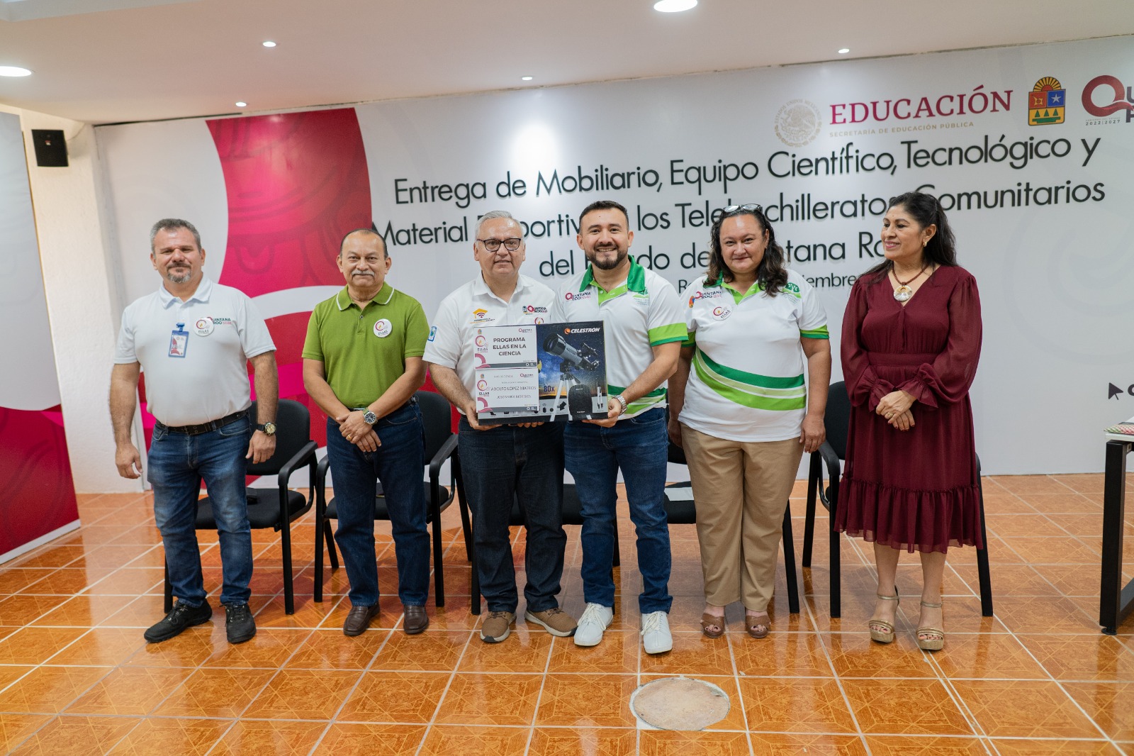 PODER Y CRÍTICA | REDACCIÓN | Con el objetivo de fortalecer la práctica docente y acompañamiento de sus actividades educativas, así como fomentar el interés de las estudiantes mujeres en el área de ciencias, tecnología, ingeniería y matemáticas, la Secretaría de Educación de Quintana Roo (SEQ), hizo entrega de mobiliario, equipo tecnológico, material deportivo y kit de ciencias a los 79 Telebachilleratos Comunitarios de ocho municipios de Quintana Roo.