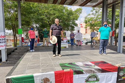 Tabasco, 01 agosto; poderycritica.-Un grupo de aproximadamente 15 integrantes del Frente Nacional Antiamlo (FRENA), protestan en Plaza de Armas por el mal manejo que Andrés Manuel López Obrador ha dado a la pandemia del Coronavirus, la seguridad y el desempleo