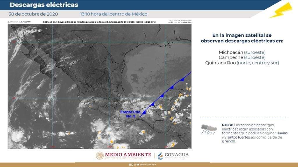 Chetumal, Q. Roo, Viernes 30 de Octubre del 2020, poderycrítica.- El Frente Frío 9 generará lluvias y actividad eléctrica en gran parte del estado, informó la Coordinación Estatal de Protección Civil.