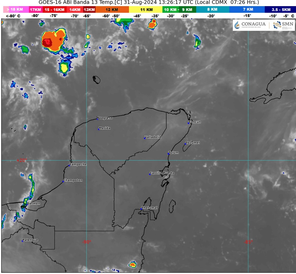 Simultáneamente, la llegada de la onda tropical No. 20 a la península de Yucatán, sumada a su interacción con un canal de baja presión en el sureste, resultará en lluvias intensas a muy fuertes en estas regiones, con precipitaciones especialmente intensas en Oaxaca y Chiapas.
