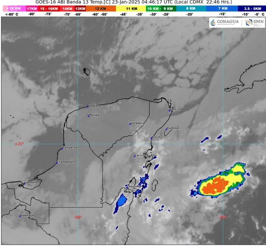 Para la Península de Yucatán habrá cielo medio nublado a nublado, con lluvias puntuales fuertes que podrían generar encharcamientos e inundaciones en Quintana Roo; así como chubascos en Campeche y Yucatán.