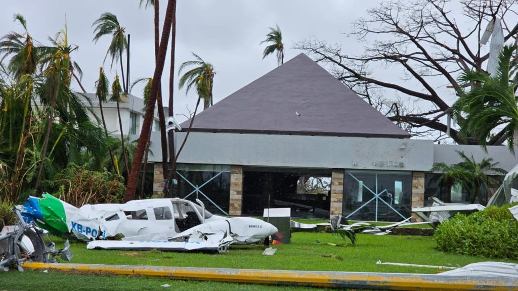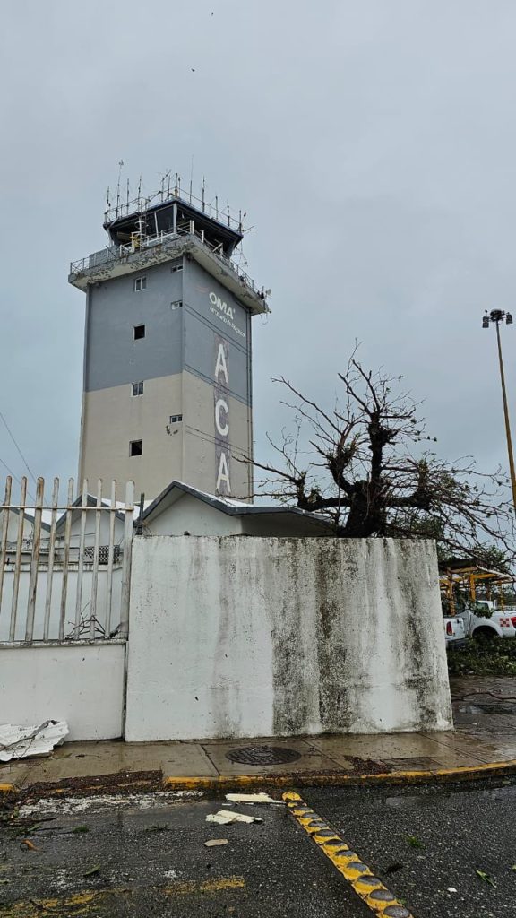 Y dio a conocer las acciones de protocolo y estado de operaciones del Aeropuerto de Acapulco después de una primera inspección. El aeropuerto se ubica en el Boulevard de las Naciones, justo en el área donde tocó tierra Otis los primeros minutos de este miércoles 25.