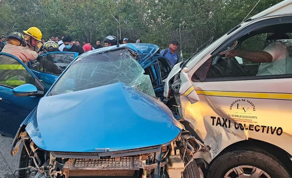 De acuerdo al reporte preliminar el accidente automovilístico en Puerto Morelos ocurrió entre un auto particular de color azul y una Urvan de transporte público, del sindicato de Taxistas de Leona Vicario.