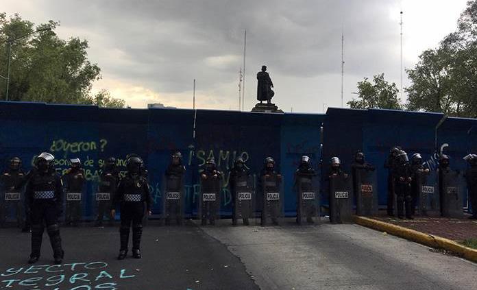 México, 13 octubre; poderycritica.-Un fuerte control policial, con una barricada y un centenar de agentes, inhibió las amenazas de derribo de una estatua de Cristóbal Colón en la capital mexicana este lunes 12 de octubre.