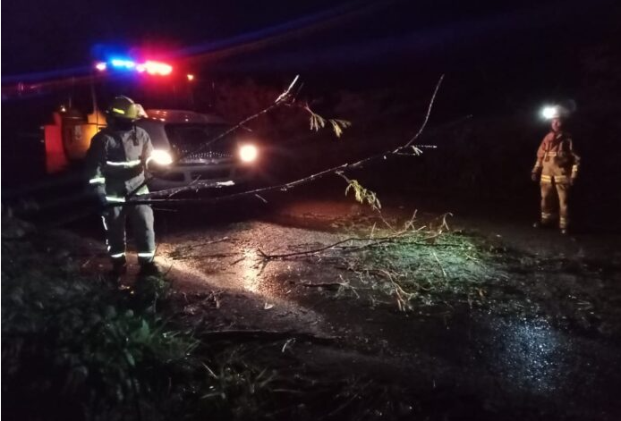 Personal del H. Cuerpo de Bomberos de Kantunilkín debieron movilizarse anoche, armados con motosierras y hachas, para retirar estos árboles y así despejar la vía, además de evitar un posible accidente.
