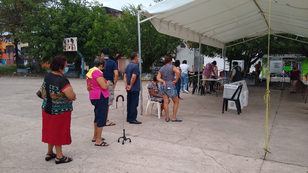 La fila de ciudadanos que quiere votar se alarga, mientras los pocos funcionarios que hay han pedido a la gente que alguno asuma voluntariamente la responsabilidad de ser funcionario de casilla para que la votación pueda dar inicio, pero no han tenido éxito.