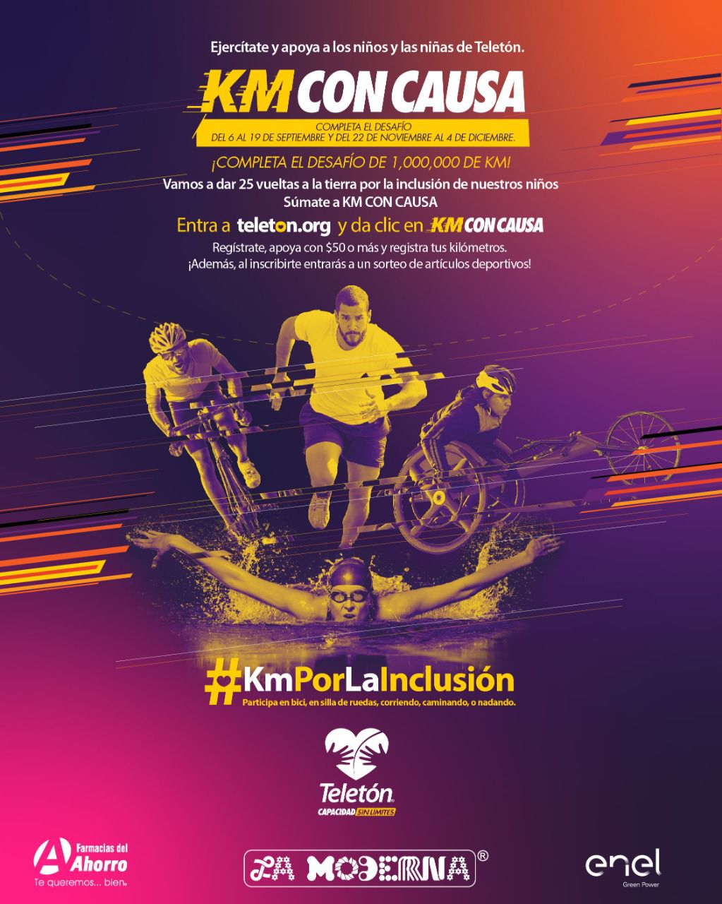 La dinámica de la primera etapa consiste en lo siguiente: las y los participantes sumarán kilómetros nadando, corriendo, rodando o caminando hasta lograr la meta comunal de 1, 000,000 km, que equivalen a 25 vueltas a la Tierra. Si llegamos a la meta empresas aliadas, como La Moderna y Enel, realizarán un importante donativo a la fundación para continuar atendiendo a miles de niños con discapacidad, cáncer o autismo.