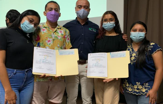 Los alumnos Amairani Nieto Sierra, Sintya Teh Pat,Cecilia Cortés Pérez y Alejandro Chan Manzanero ganadores del primer lugar con el proyecto denominado “Herbosentido”, diseñaron una propuesta para revalorar el uso medicinal de las plantas de la zona con un enfoque en el turismo inclusivo, para aquellas personas que tienen una discapacidad visual.