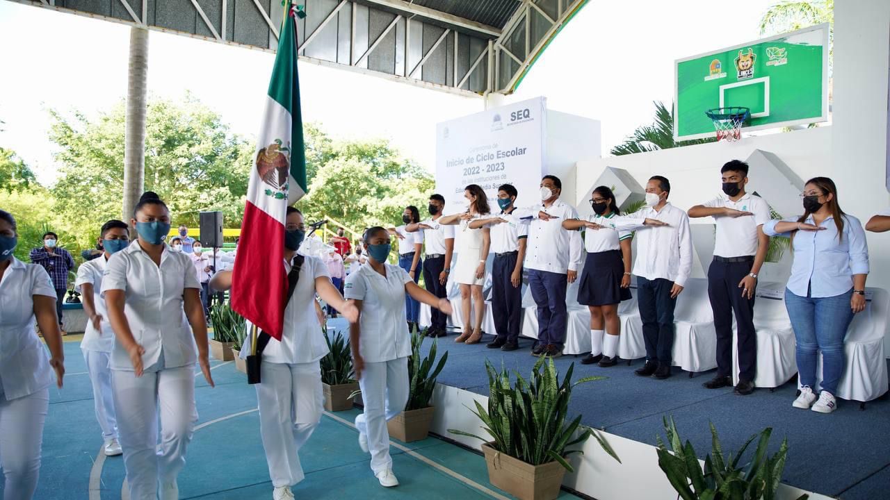 Respecto al inicio de clases en el nivel medio superior, el gobernador Carlos Joaquín y autoridades educativas estuvieron en el plantel Chetumal del Colegio de Estudios Científicos y Tecnológicos de Quintana Roo (CECYTEQROO), sede de la ceremonia de inicio del ciclo escolar 2022-2023.