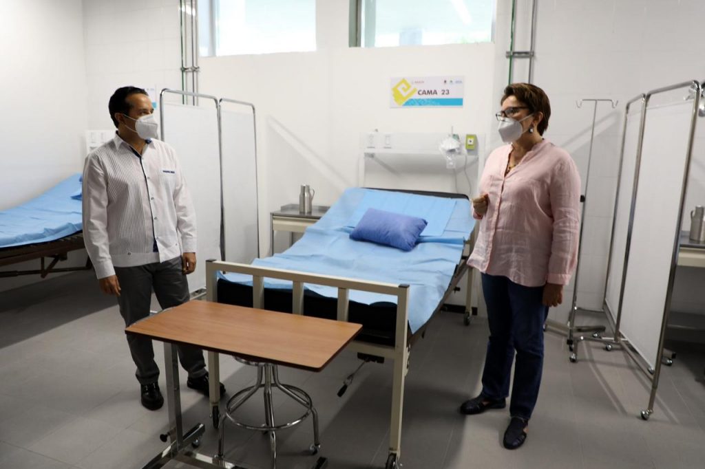Este espacio, que cuenta con 24 camas, desahogará la carga de pacientes del Hospital General (SESA) de Playa del Carmen, el cual cuenta con un recién inaugurado anexo exclusivo de 28 camas para enfermos de COVID-19.