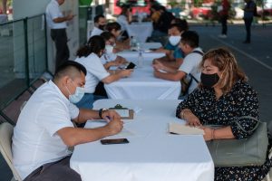 Al hacer un recorrido para constatar el desarrollo de la actividad que se lleva a cabo con los protocolos y filtros sanitarios para el acceso de los aspirantes, la Primera Autoridad Municipal agregó que esta labor es gracias a la sinergia con empresas formales que tienen un espíritu humano de reclutar talento bajo lineamientos de inclusión.