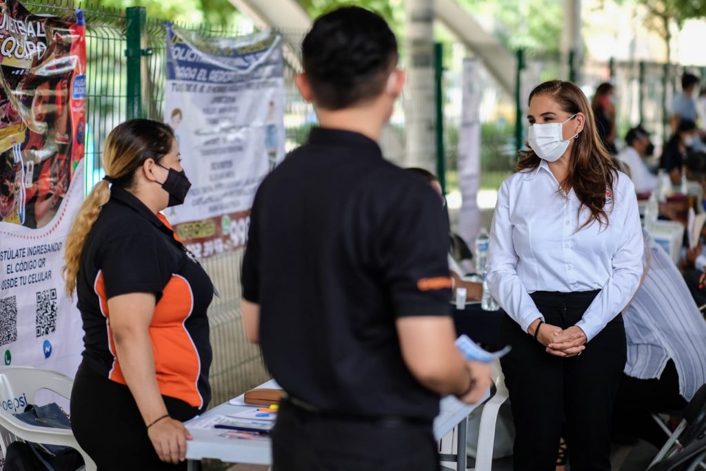 Mara Lezama expresó que a ello se suman los exitosos programas de fomento al empleo a través de la Dirección de Desarrollo Económico, como son las diferentes modalidades del programa “¡Ven y Empléate!” tanto de manera presencial como en línea o en oficina, que vinculan a las empresas con los buscadores para que accedan a un espacio laboral fijo.