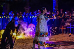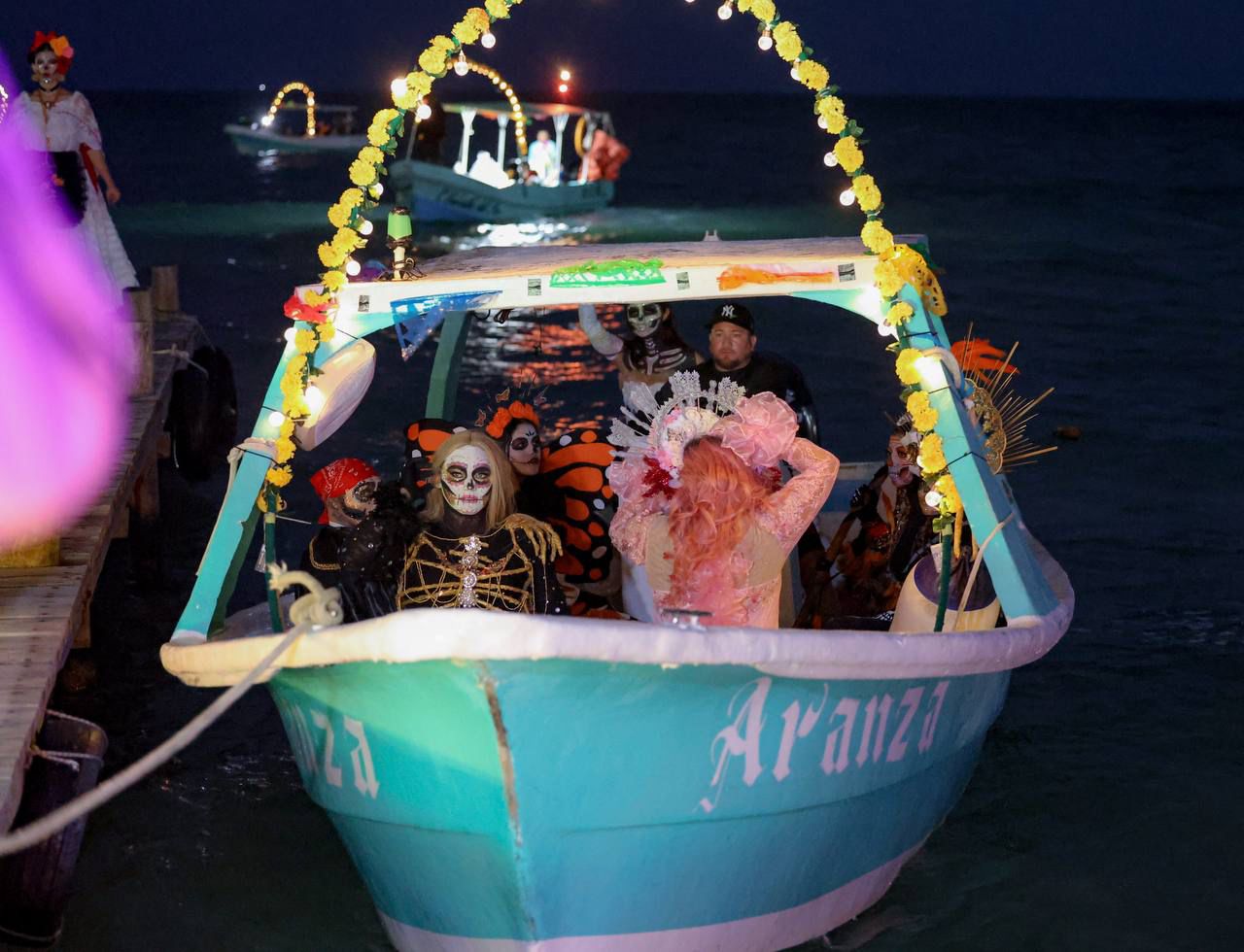 Seguido del sonido del caracol, inició la procesión de ánimas partiendo desde el muelle de la calle 45 hacia la entrada de la subdelegación que es el origen de Cancún, para mezclarse en la verbena popular que envolvió en su primer día tanto a vecinos, vecinas, familias, así como turistas nacionales y extranjeros quienes se encontraban de visita en este polo vacacional.