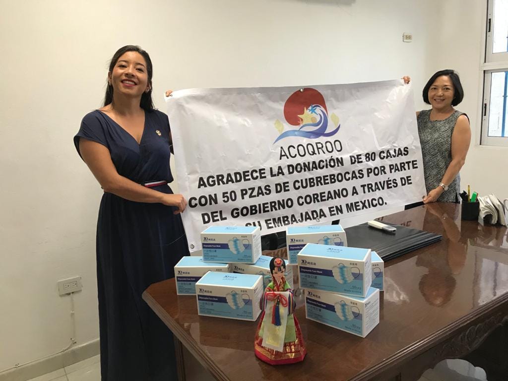 Cancún, Q. Roo, Martes 03 de Noviembre del 2020, poderycrítica.- El gobierno de Corea en días pasados realizó la donación de 80 cajas de cubrebocas, piezas que fueron entregadas a través de la Asociación de Coreanos de Quintana Roo, por medio de la Embajada de este país en México.
