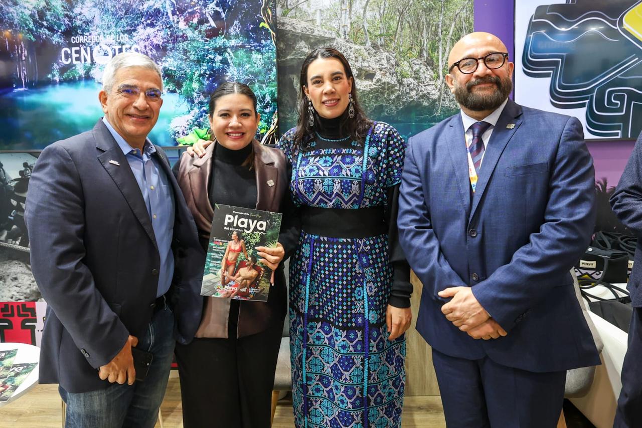 Previamente, la secretaria federal de Turismo, Josefina Rodríguez Zamora, visitó el stand de Playa del Carmen, donde se unió al reconocimiento a la labor de promoción turística que encabeza la presidenta municipal Estefanía Mercado, por conducto de la delegación enviada a la FITUR, ya que ese trabajo fortalece a México como destino de moda.