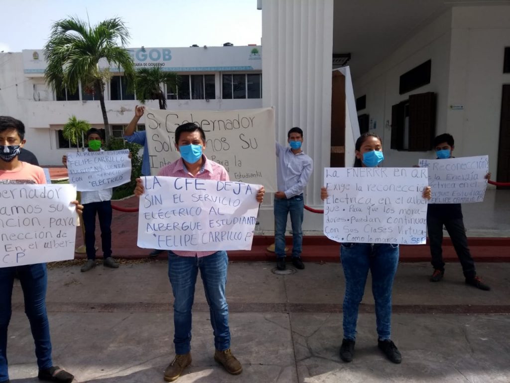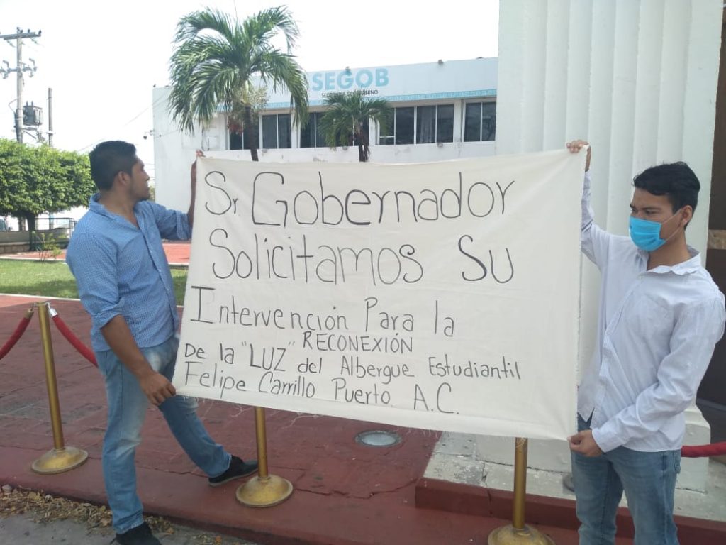 Chetumal, Q. Roo, Martes 30 de Junio de 2020, poderycrítica.- Por segunda ocasión, jóvenes del Albergue Estudiantil “Felipe Carrillo Puerto”, A.C, se manifestaron en los bajos del Palacio de Gobierno, para pedirle de nueva cuenta al gobernador su ayuda para pagar el servicio de energía eléctrica y sea reconectado el servicio en los albergues estudiantiles.