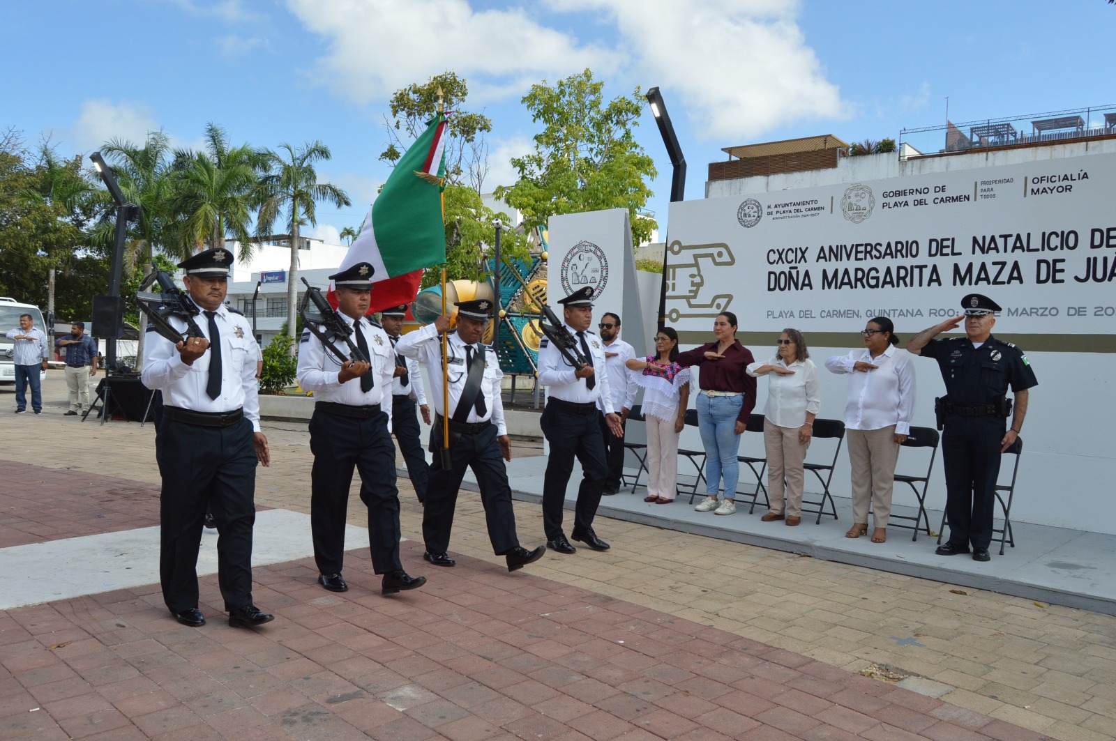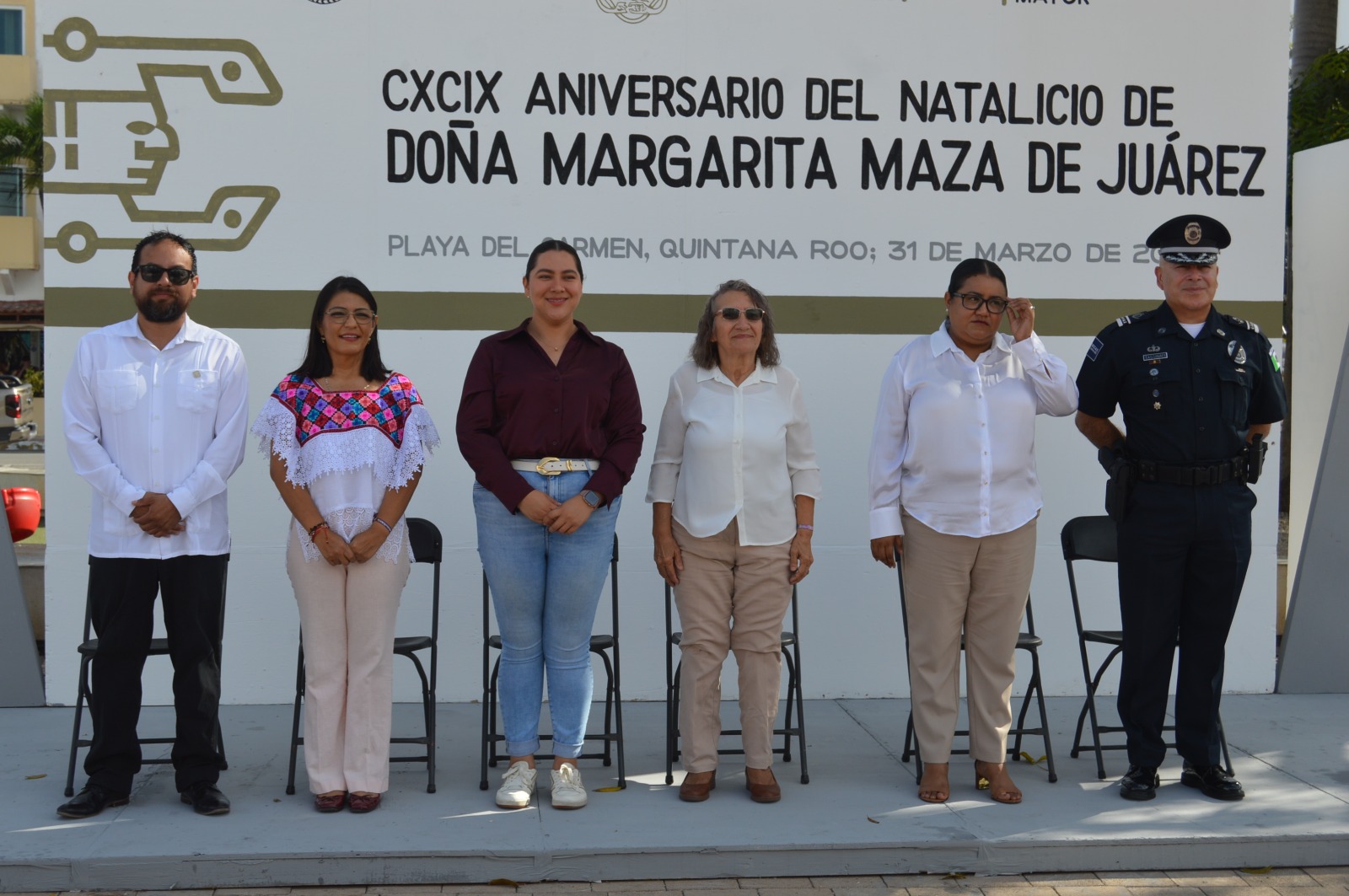 Durante la ceremonia se realizaron los honores a la Bandera Nacional y se entonaron los himnos a Quintana Roo y Nacional Mexicano, en un acto solemne donde se rindió homenaje al legado de Margarita Maza de Juárez, una figura clave en la historia de México.