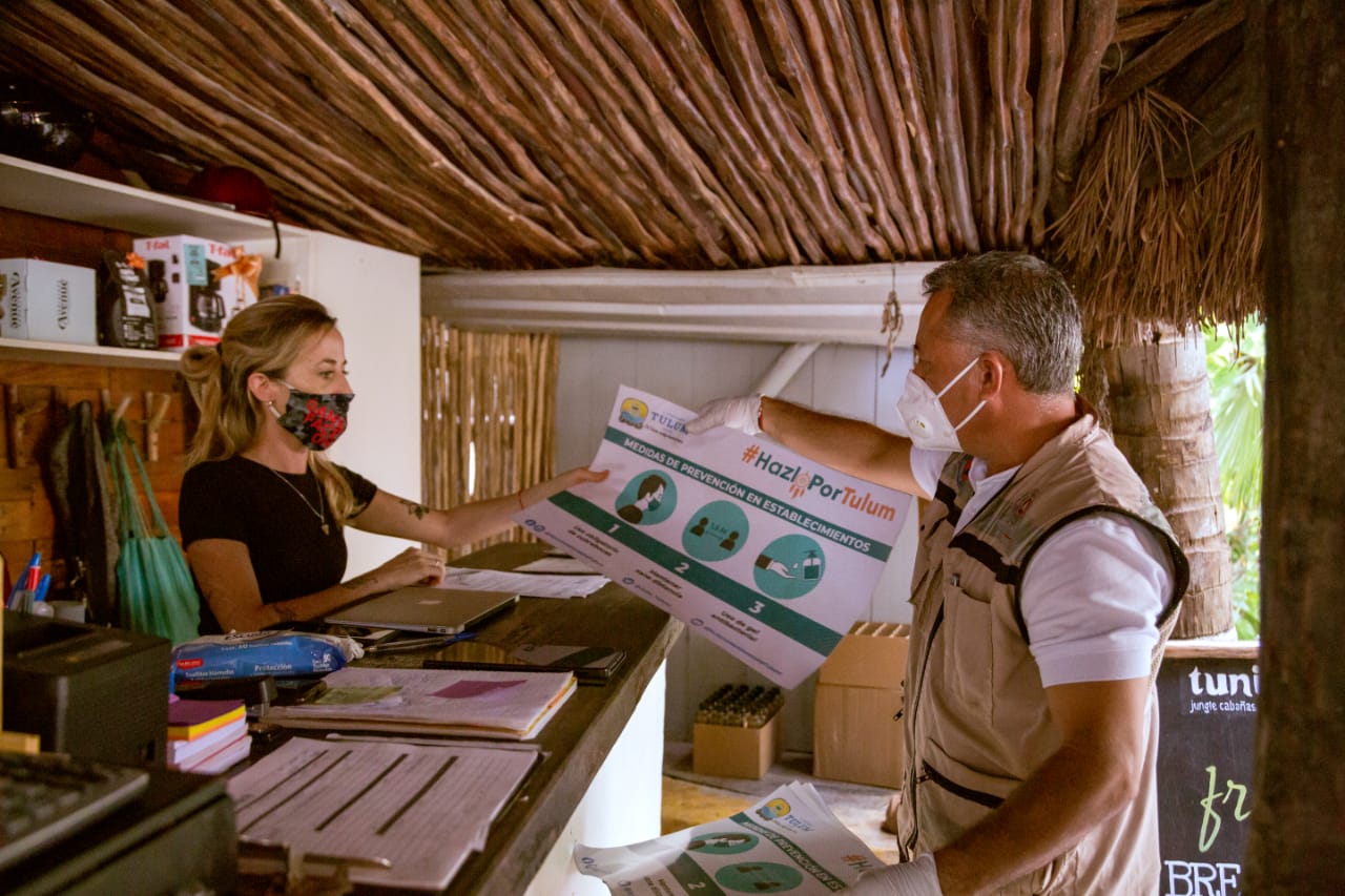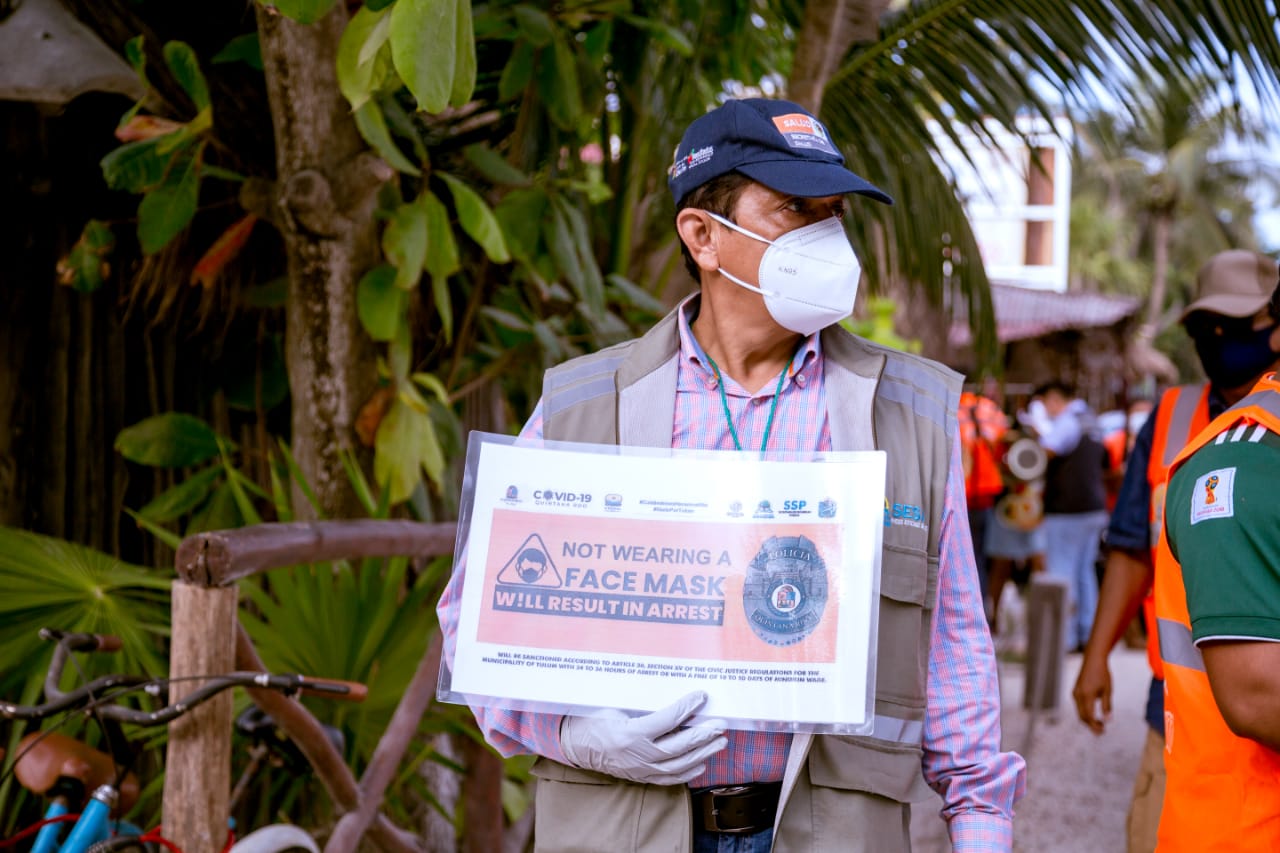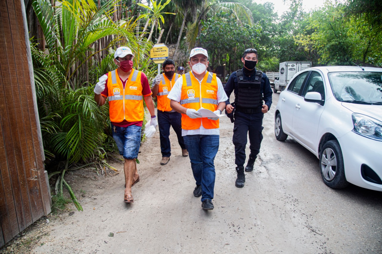 Esto, mientras continúan las acciones de supervisión a comercios, perifoneo en español, inglés y lengua maya, sanitización a iglesias y centros de reunión, inspecciones al transporte público, instalación de tres filtros sanitarios, implementación de un módulo de pruebas rápidas y gratuitas de Covid-19, reuniones virtuales con cámaras empresariales y asociaciones civiles para conjuntar esfuerzos en todas las áreas, principalmente la turística, entre otras.