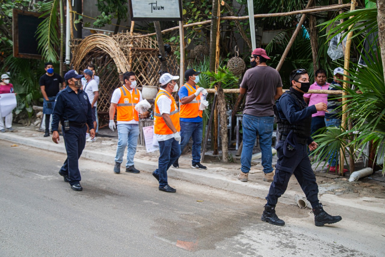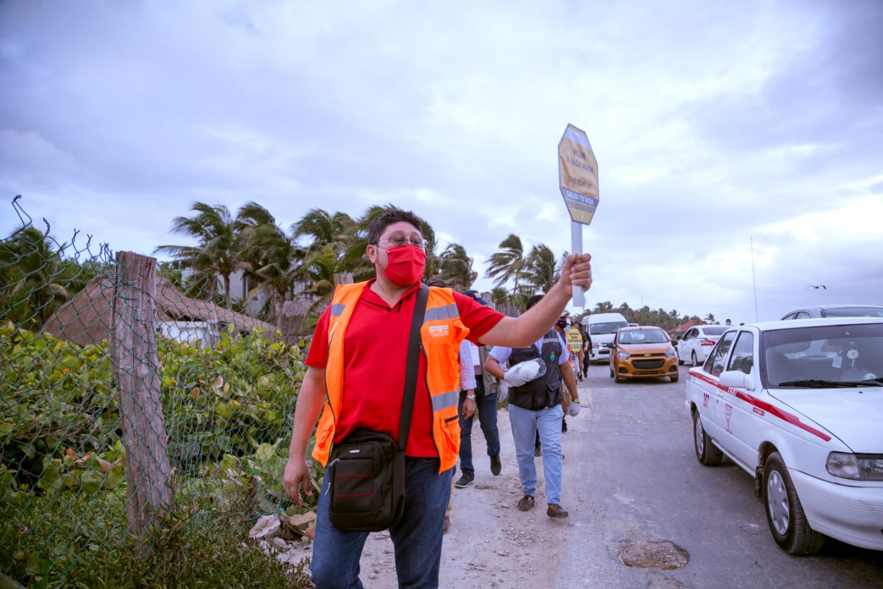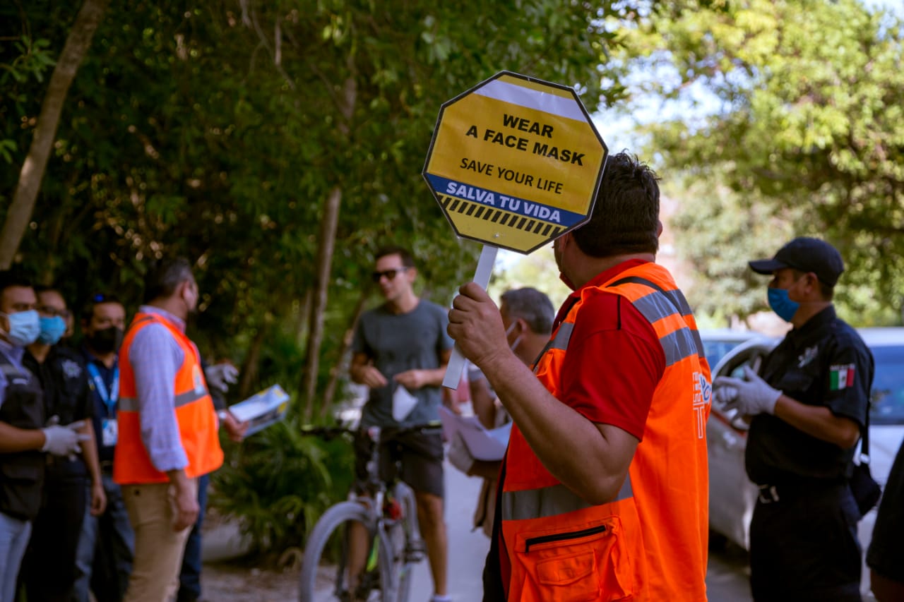 La dirección de Seguridad Pública y Tránsito y la Coordinación de Protección Civil, intensifican la concientización con perifoneo en calles de la ciudad y altavoces en delegaciones y comunidades, además de mantener presencia en los tres filtros sanitarios instalados a las entradas de la ciudad, donde con personal de la dirección de Salud solicitan el cumplimiento de medidas a quienes ingresan a Tulum. A su vez, la coordinación de Transporte y Vialidad inspecciona el cumplimiento de medidas en el transporte local, tanto a usuarios como a operadores.