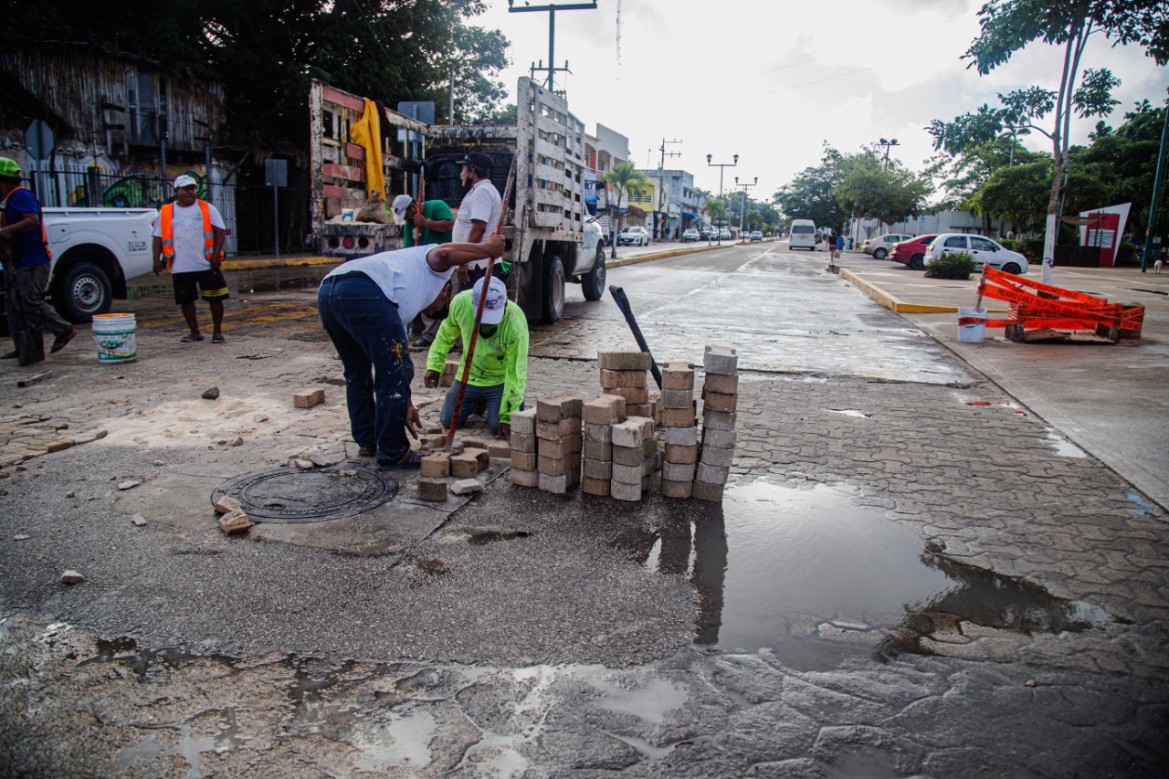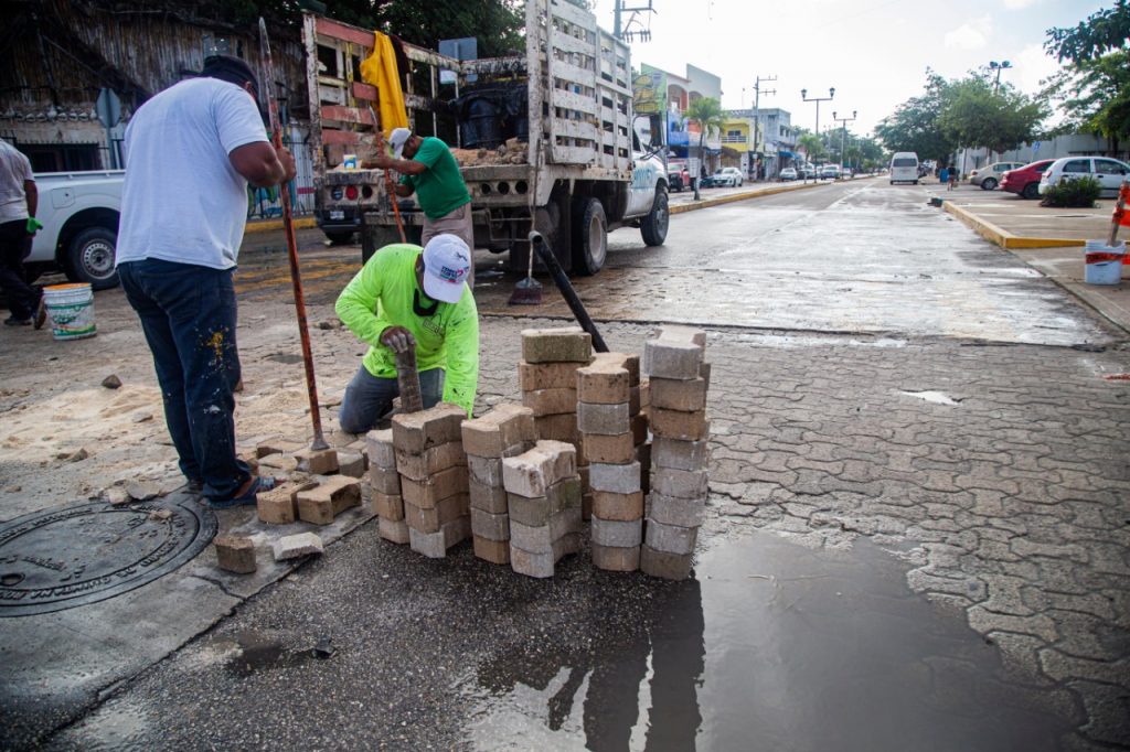 El trabajo de sustitución del adocreto dañado empezó en la avenida Osiris cruzamiento con avenida Tulum en ambos lados de la avenida y sustituirán las piezas dañadas a lo largo de toda la avenida principal, indicó Manzanilla Lagos.
