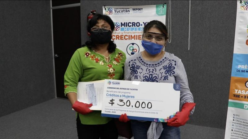 Por instrucciones del Gobernador Mauricio Vila Dosal, a través del programa Microyuc Mujeres, contemplado dentro del Plan Estatal para Impulsar la Economía, los Empleos y la Salud de los yucatecos frente a la emergencia sanitaria, se distribuye financiamiento a las empresarias, quienes al no percibir ingresos estaban pasando por momentos difíciles y a punto de dejar sin empleo a otras mujeres.