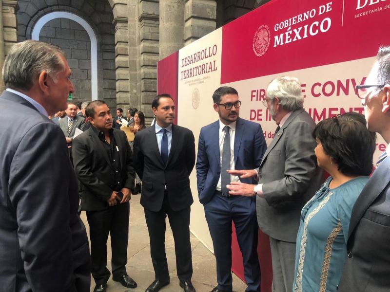 Asimismo, Vila Dosal atestiguó la firma de un convenio entre el titular de la Sedatu, el responsable de la Unidad de Asuntos Jurídicos de la dependencia federal, Miguel Ángel Cancino Aguilar; el director del Instituto de Movilidad y Desarrollo Urbano Territorial (IMDUT) del estado, Aref Karam Espósitos y el alcalde de Progreso, Julián Zacarías Curi, que tiene como propósito establecer un intercambio de información y capacidades técnicas para contribuir a mejorar los instrumentos normativos y de planeación urbana de este municipio costero.