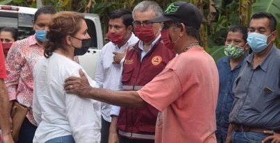 Acompañado de la primer concejal, Martha Elena López Pérez, el funcionario entregó alimentos en beneficio de pobladores de estas comunidades afectadas por el desbordamiento del río La Sierra.