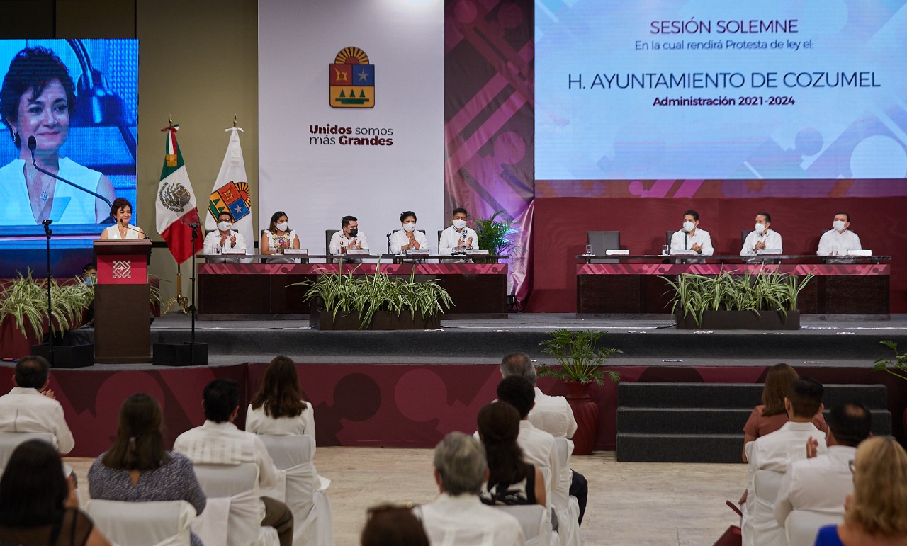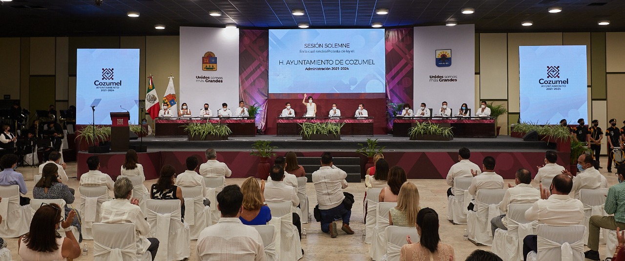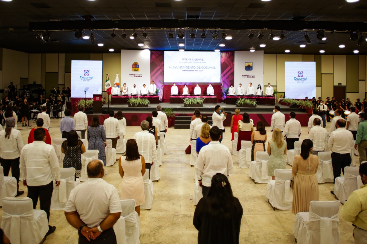 Cozumel, Q. Roo, Viernes 01 de Octubre de 2021, poderycrítica.- A fin de cuidar la salud de los asistentes al Centro de Convenciones de Cozumel para atestiguar la ceremonia de “Toma de protesta”, el Gobierno municipal que encabeza, Juanita Alonso Marrufo, llevó a cabo la aplicación de los protocolos de prevención contra Covid-19 que recomienda la Comisión Federal para la Protección Contra los Riesgos Sanitarios (COFEPRIS).